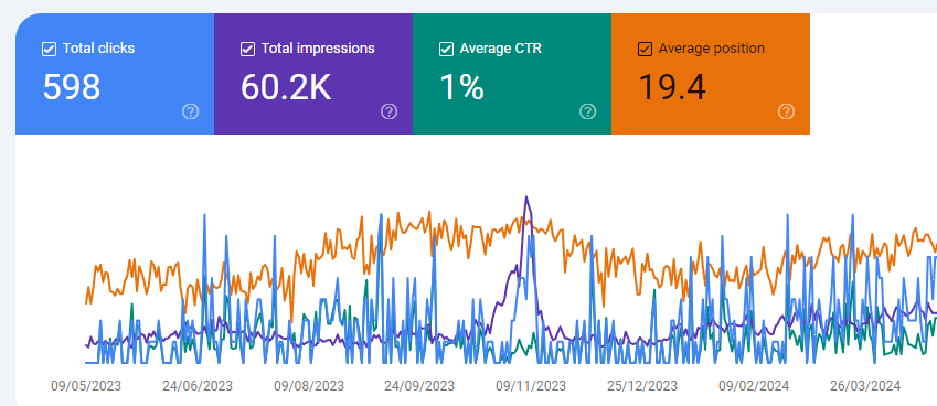 Helped them get 598 website clicks and 60.2k total impressions with an average CTR of 1% by implementing right SEO techniques.