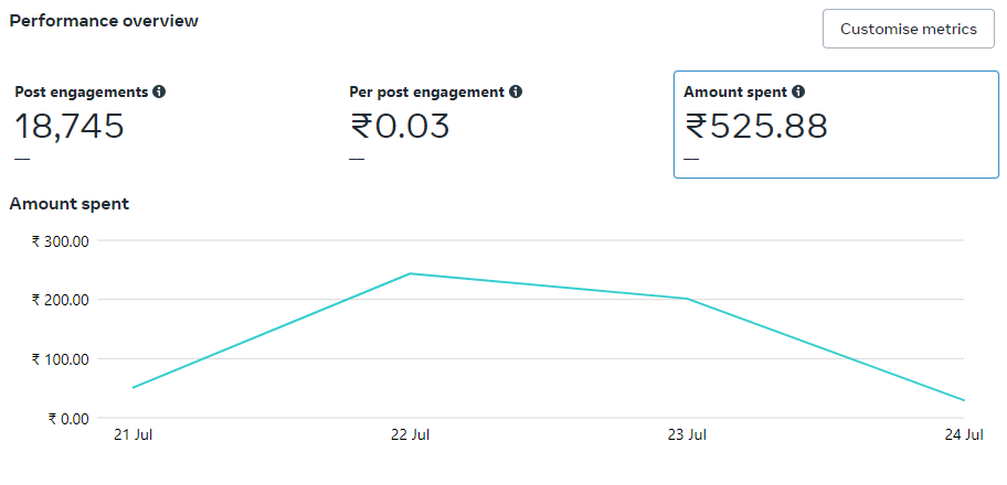 18.5k+ post engagement on Instagram with an Ad spend of Rs 525 only.