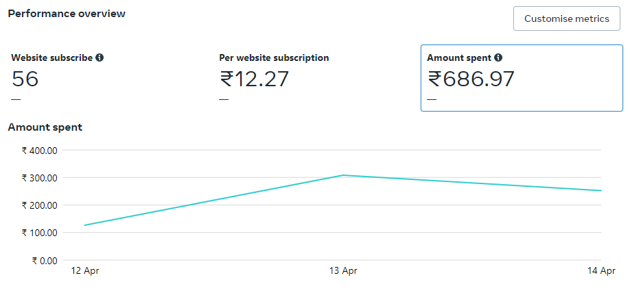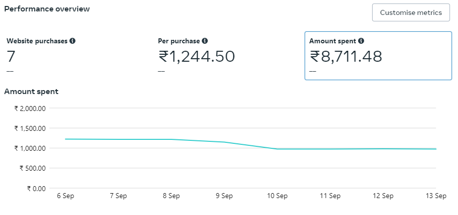 Got 180+ orders of kits with an Ad spent of Rs. 1242 with the help of a Facebook conversion campaign.