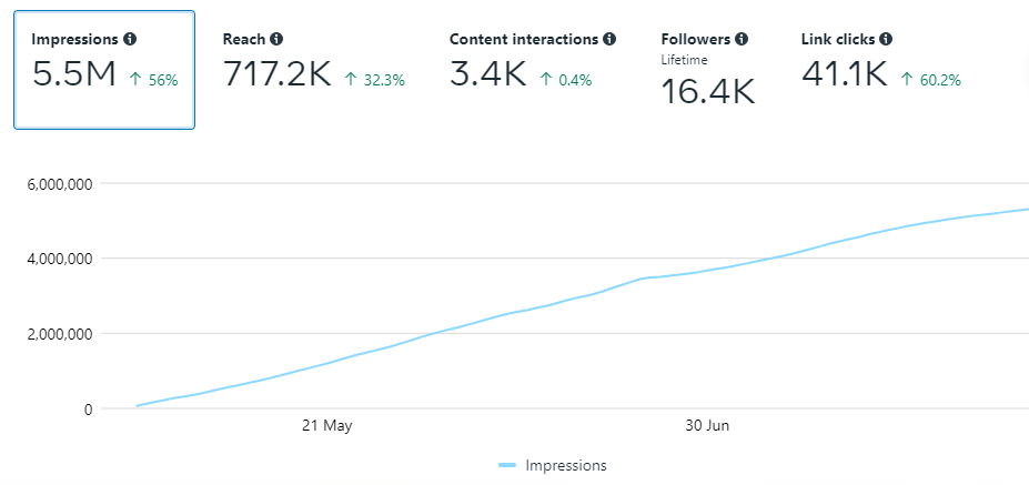 Helped them increase Facebook impressions to 5.5M (56% increase) and reach to 712.2k (32.3% increase) in merely 2 months.