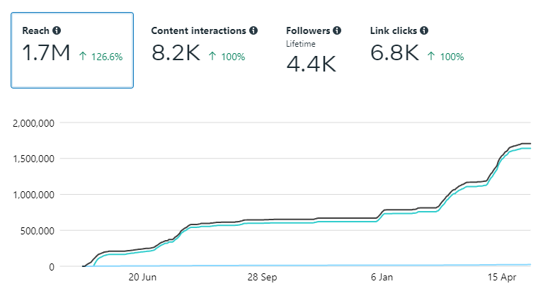 126.6% increase in Instagram reach (currently 1.7M) and 100% increase in content interactions (8.2k interactions).